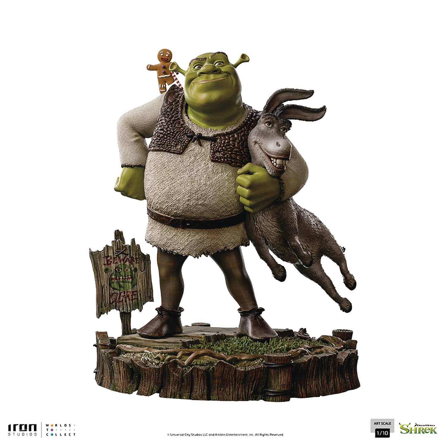 From Iron Studios. Straight from one of the most praised animated masterpieces, Shrek, Iron Studios proudly brings the statue Shrek, Donkey and The Gingerbread Man Deluxe Art Scale 1/10-Scale Statue to your collection as their first release from this beloved franchise!