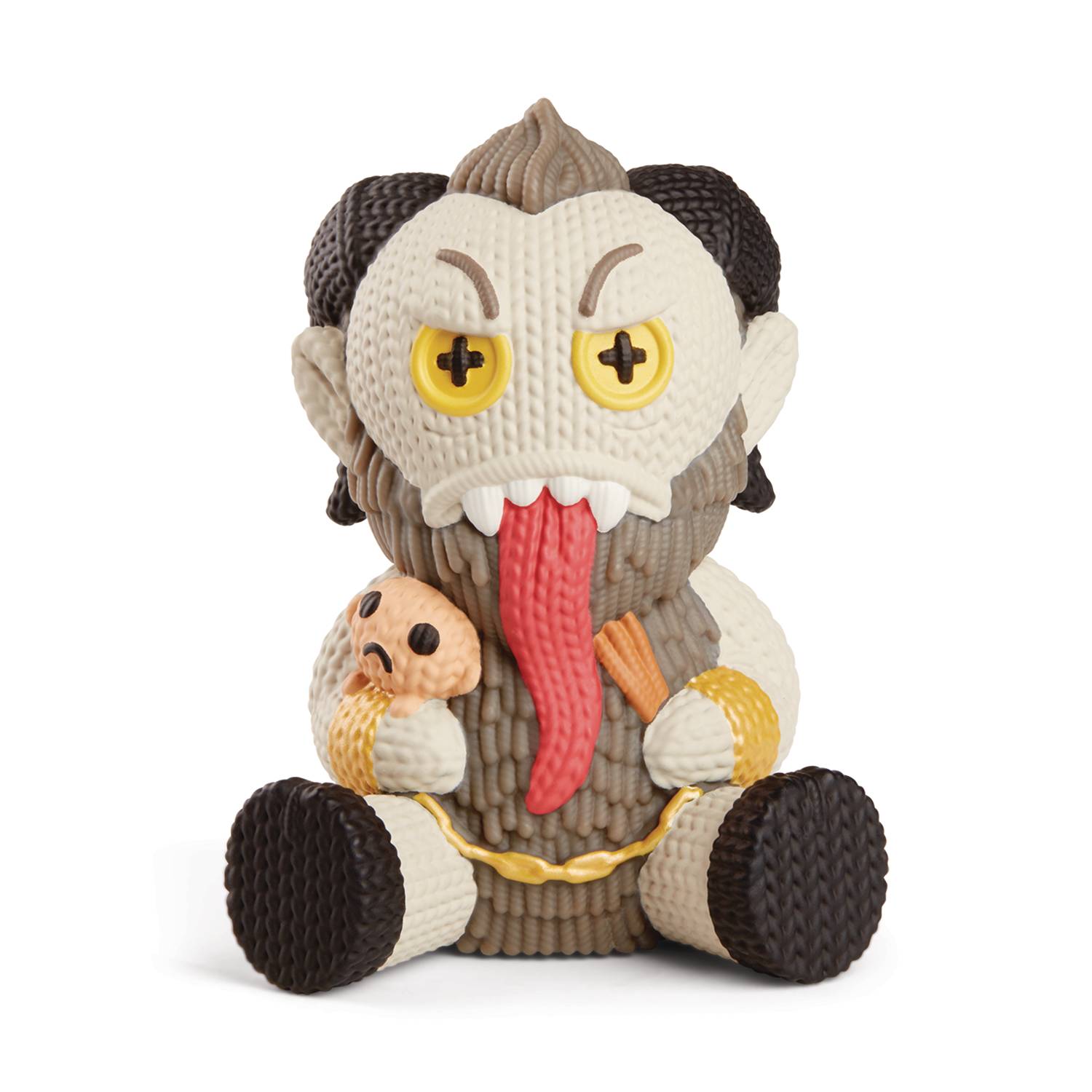 From Bensussen Dutch & Associates. The Krampus vinyl figure is designed, molded, and painted to look like a knit toy. The Krampus figure toy measures approximately 5" tall. Complete with barcode decal to replicate a sewn-in label. Brought to you by Handmade by Robots. Packaged in a collector-friendly Show-in Tell Box!