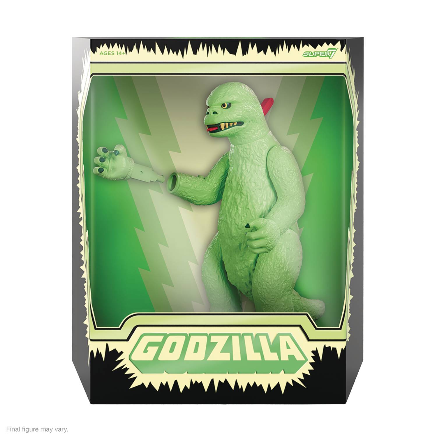 From Super7. Just when you thought it was safe to go to sleep, a monster emerges from the darkness! A glow-in-the-dark twist on the classic Shogun Godzilla! Standing 8" tall, this made-to-order ULTIMATES! Shogun Godzilla figure comes in glow-in-the-dark green and is complete with its spring-loaded lever-action tongue and push-button firing fist, just like the vintage toy! Lock in your pre-order for the glow-in-the-dark ULTIMATES! Shogun Godzilla figure, sure to be the shining star of any Kaiju collection!
