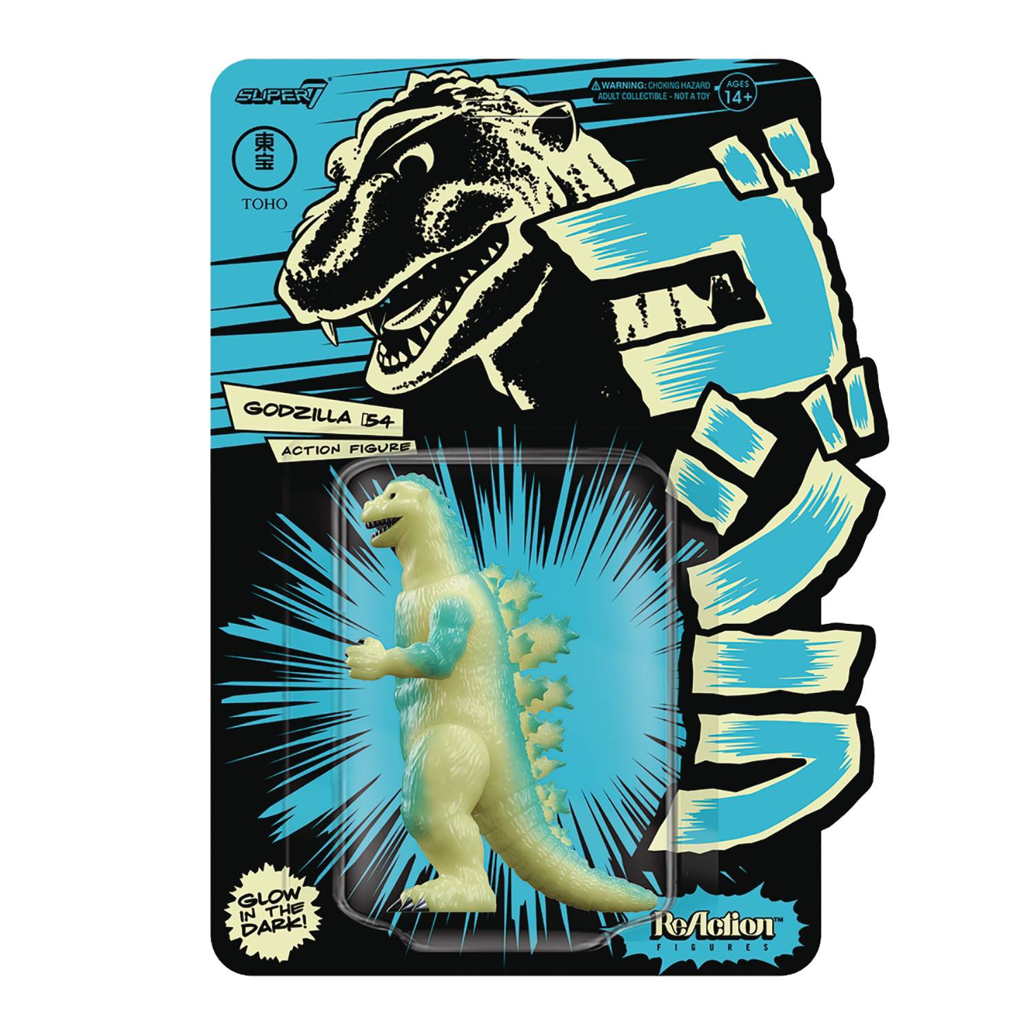 From Super7. The original King of the Monsters, now in glow-in-the-dark! Standing 4" tall and packaged on a special die-cut cardback, you won't need Godzilla's fiery path of destruction to light up your Kaiju collection- you can brighten it by adding the glow-in-the-dark Godzilla '54 ReAction Figure!