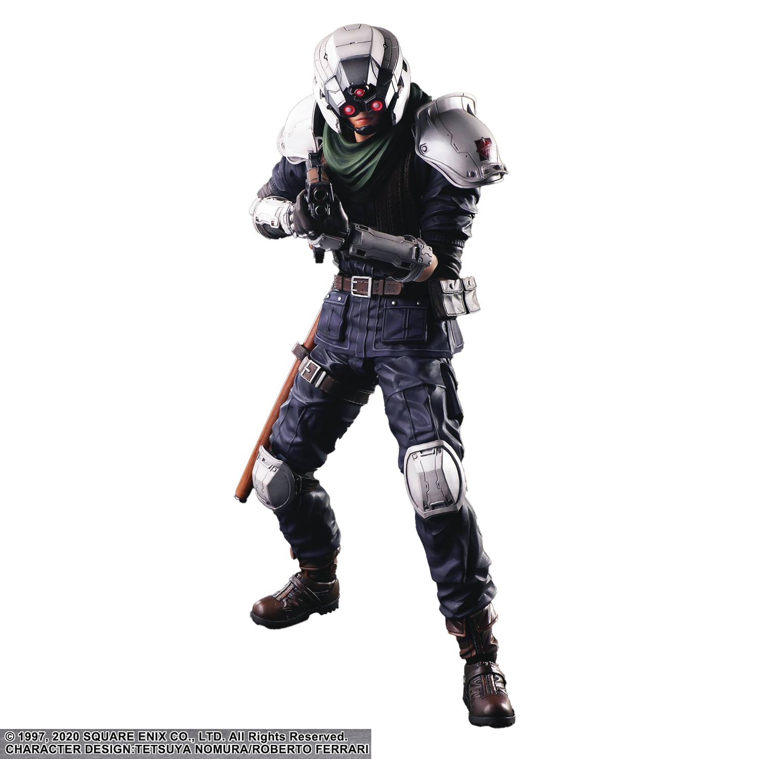 From Square Enix. The Shinra Security Officer from Final Fantasy VII Remake, a supporting character who repeatedly gets in the way of Cloud and his friends, is joining the PLAY ARTS KAI lineup! Each detail; from the Shinra regulation three-scope helmet, to the texture on their armor on their shoulders and knees; represents the finely rendered security officer uniform depicted throughout the series. The figure comes with a variety of interchangeable hand pieces, including a grenade-carrying hand, a tonfa that can be held in the dedicated hand or mounted against the thigh, a machine gun, a shotgun, a stun baton, and various other weapons, allowing you to recreate various battle scenes from the game.
