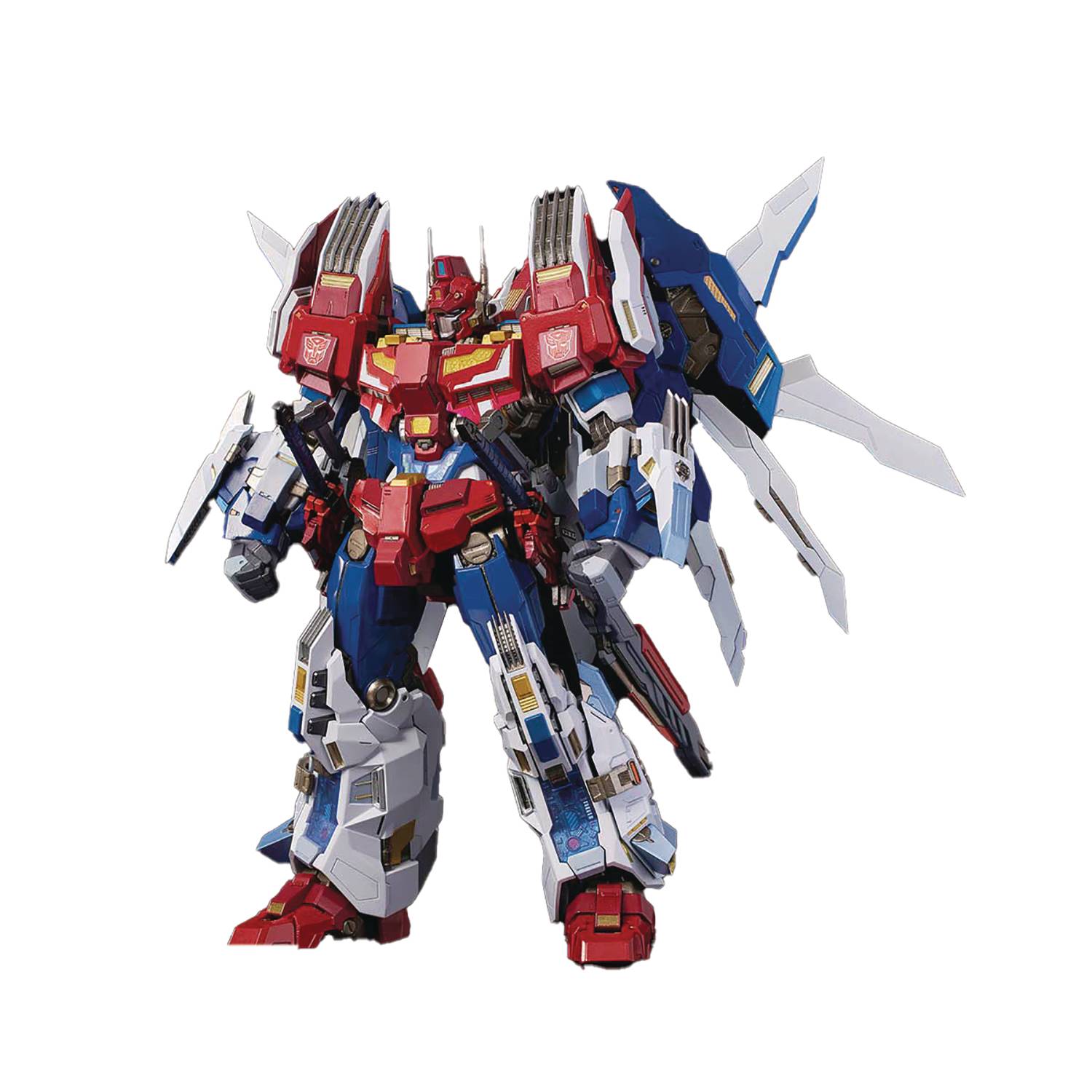 From Flame Toys. A member of Autobot Brainmaster, the Supreme Commander of the Autobots, Star Saber joins Flame Toys KURO KARA KURI series! As the greatest swordsman in the universe, he includes 2 small swords, a big sword and a shield as new weapon parts. Two interchangeable heads, Star Saber version and Mask off version, are available! The Star Saber head is equipped with and LED unit, and 6 LED units come packed in the Autobots 8 1/4" tall body that is super-poseable with die-cast for solidity and heaviness. Combine with the separately sold KURO KARA KURI Victory Leo to form KURO KARA KURI Victory Saber!